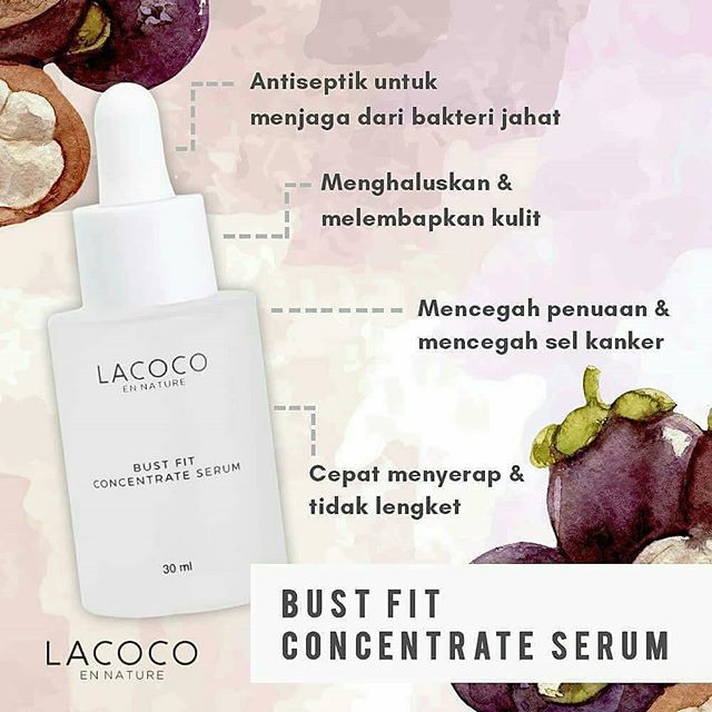 Lacoco Bust Fit Concentrate Serum adalah perawatan untuk perawatan payudara wanita dengan tekstur yang ringan dan cepat menyerap.Tekstur yang cepat menyerap akan memberikan kenyamanan saat digunakan,tanpa rasa lengket.Meskipun teksturnya ringan,perawatan yang di berikan tetap intensif. Bust Fit Concentrate serum merawat kulit penyudara sehinggan lebih kencang,serta meningkatkan elastisasi kulit payudara.