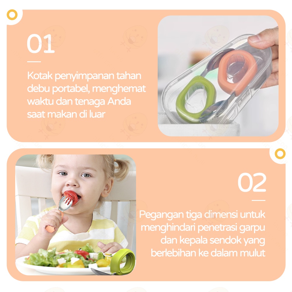 🐣Fungsi: ✔-Biarkan anak-anak dengan mudah menguasai makan sendiri,Pegangan cincin berongga sesuai dengan gerakan bayi dan mudah digunakan Silikon fleksibel aman untuk dikunyah. ✔-Ellipse memperdalam permukaan sendok, sehingga sulit untuk menjatuhkan makanan saat menyendoknya. ✔-Desain zigzag di bagian dalam garpu memudahkan mengambil mie dan makanan lainnya. ✔-Kotak penyimpanan tahan debu yang cocok, portabel, bersih dan higienis