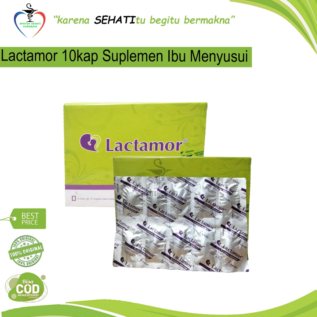 LACTAMOR merupakan suplemen makanan dengan kandungan ekstrak biji Fenugreek, ekstrak biji daun katuk, dan Vitamin B12. Suplemen ini digunakan untuk ibu menyusui yang digunakan untuk memperlancar Air Susu Ibu (ASI). Indikasi Umum Membantu melancarkan air susu ibu (ASI) Komposisi Ekstrak biji Fenugreek (Trigonella foenum graecum) 600 mg, ekstrak biji daun katuk (Sauropus androgynus) 100 mg, vitamin B12 20 mcg Dosis 3 kali sehari 1-2 tablet Aturan Pakai Sesudah makan Perhatian Penderita diabetes, hipoglikemia, asma, migrain dan hipertensi tidak dianjurkan atau hindari menggunakan suplementasi ini Efek Samping Ketika mengkonsumsi suplemen ini, ada kemungkinan air seni dan keringat akan berbau khas. Kadang dapat terjadi pembentukan feses yang lebih lunak baik pada ibu maupun bayi yang akan kembali seperti semula ketika penggunaan suplemen makanan ini dihentikan. Penggunaan lebih dari dosis yang dianjurkan sehari dapat menyebabkan rasa mual. Golongan Produk Vitamin & Suplemen Kemasan Dus, 6 Strip @ 10 Kaplet Manufaktur Kalbe Farma No. Registrasi BPOM: SD111541931