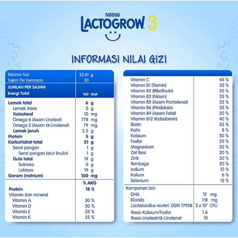 LACTOGROW 3 SUSU PERTUMBUHAN UNTUK ANAK USIA 1 - 3 TAHUNLACTOGROW 3 SUSU PERTUMBUHAN UNTUK ANAK USIA 1 - 3 TAHUN
