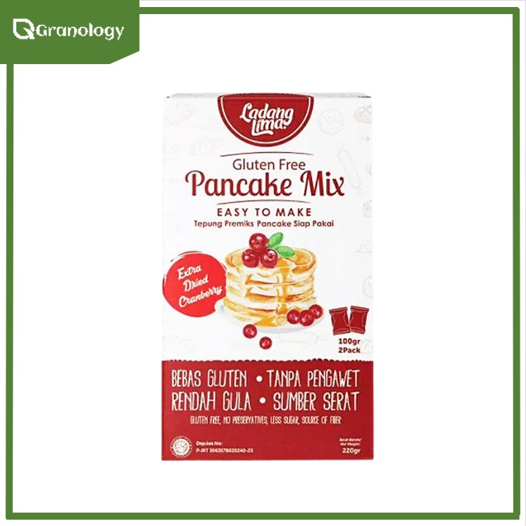 Tepung Tapioka Pancake Mix Bebas Gluten (Gluten Free Pancake Mix) merupakan varian tepung sehat yang dibuat dari 100% bahan-bahan alami. Tepung ini merupakan tepung premiks siap pakai yang dibuat dari 100% singkong pilihan yang dibudidayakan secara alami. Singkong pilihan diolah dan diproses hingga menjadi tepung. Selanjutnya, tepung singkong dipadukan dengan gula aren sehingga menghasilkan manis yang pas dan lebih sehat dari gula tebu. Selain itu, tepung ini dproses tanpa bahan 3P (Pengawet, Perasa, dan Pewarna buatan), bebas gluten, rendah gula, bebas produk susu, dan kaya akan serat. Kreasikan pancake kesukaan Anda di rumah dengan Ladang Lima Tepung Tapioka Pancake Mix Bebas Gluten!
