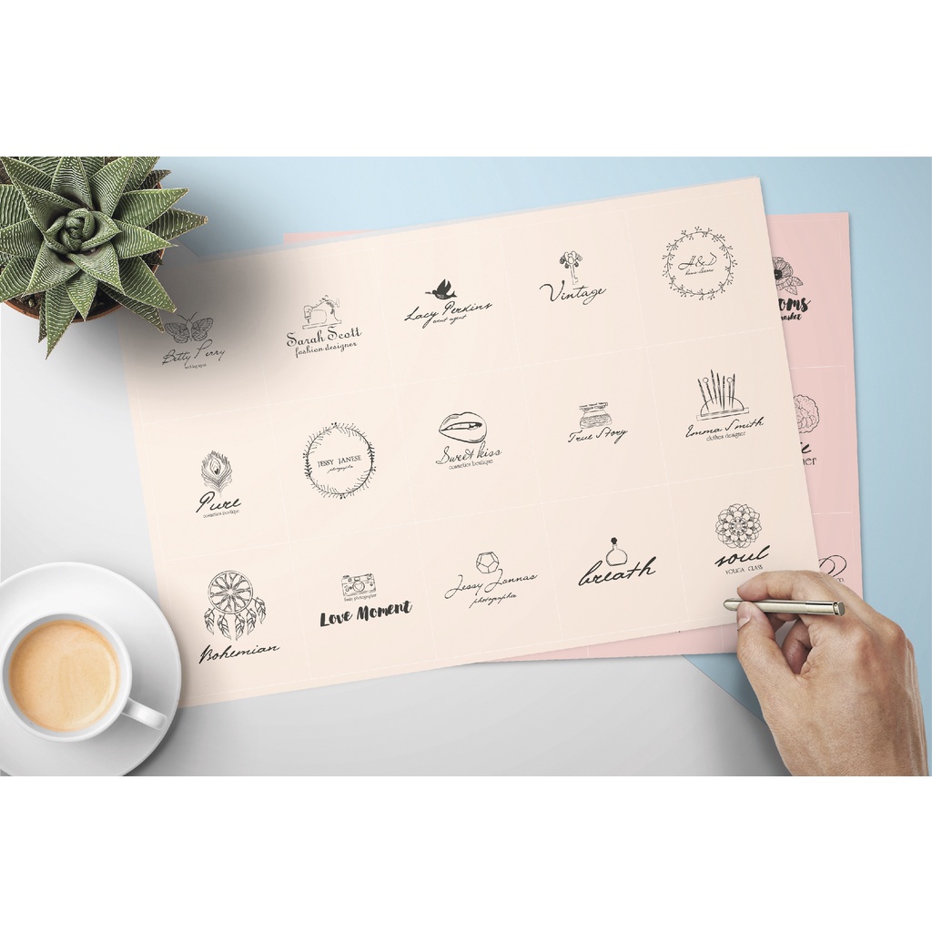About the Product Lady Boss premade logo template. It's set of 50 black and white pretty icons and premade logos. The icons and logos all come as presented, in black but everything is fully editable, so you can edit the shapes, the text, re-size or change color or fonts. This set is perfect for creating a unique style of your products. You can use the icons to create your logo.