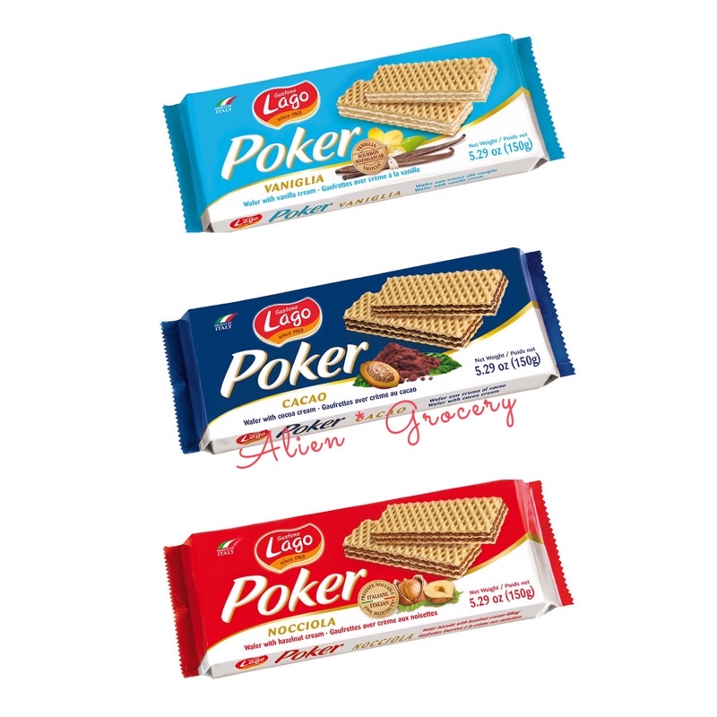 Lago Poker 150gr Cacao Nocciola Vaniglia Wafer With Coklat Kakao Cream Waffer Vanila Laggo