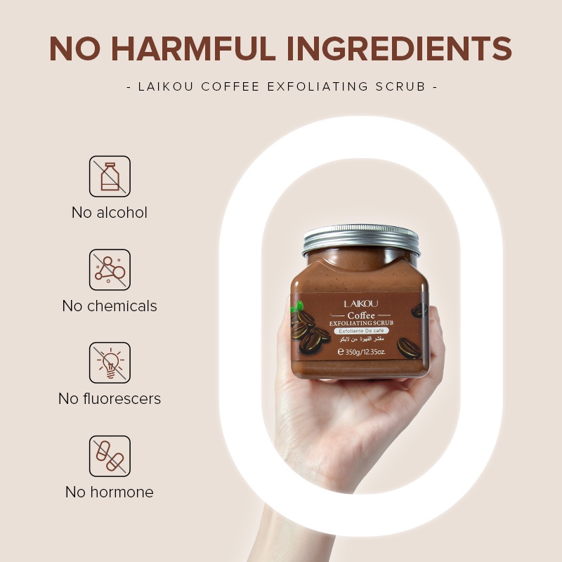 LAIKOU Coffee Exfoliating Body Scrub Membersihkan Pori-pori Mengurangi Jerawat Pada Punggung Menghaluskan Kulit 350g