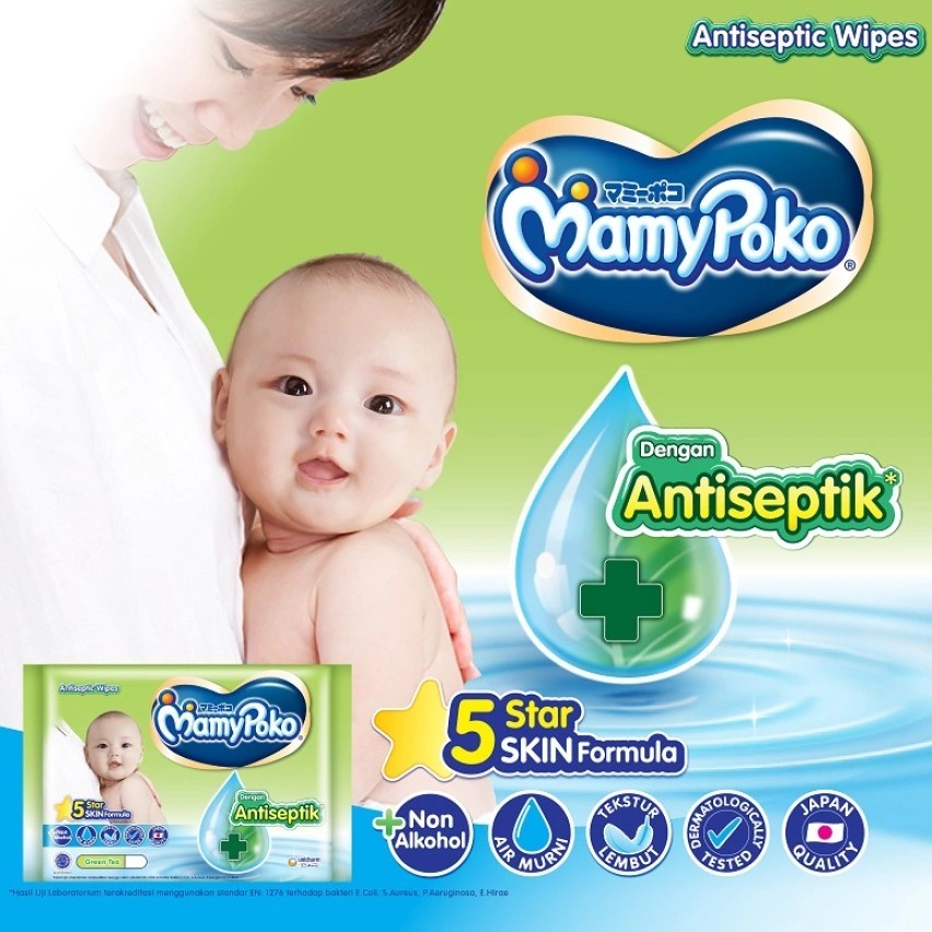 MamyPoko Baby Wipes Baby Wipes dengan air murni dan non alkohol, lebih lembut dan aman untuk membersihkan kulit bayi. sebagai bahan antiseptik alami, efektif membunuh kuman dan bakteri jahat.