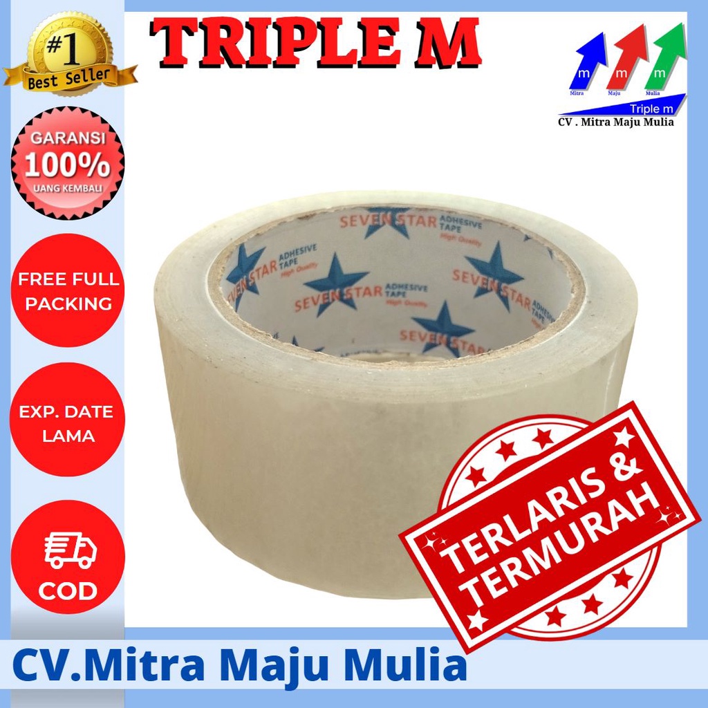 LAKBAN BENING SEVEN STAR Warna BENING 2 inch 90 Yard x 45 MM, Dengan Kualitas : - Lakban tebal - Kualitas tinggi - Harga yang murah dan terjangkau - Lem kuat dan lengket - Tidak mudah putus Lakban sangat cocok digunakan untuk kebutuhan sehari hari, sekolah, kantor, maupun industri.