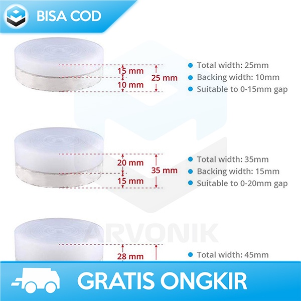 5 Meter Sealing strip ini memiliki panjang 5 meter. Anda dapat menggunting lakban ini dengan panjang seperlunya, sesuai dengan kebutuhan Anda.
