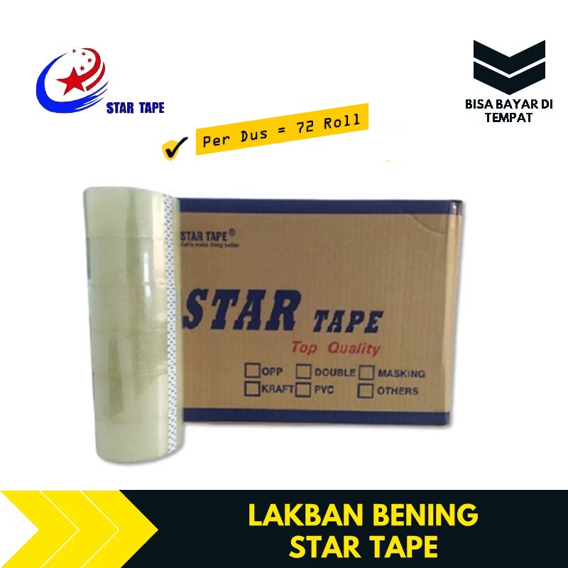 Lakban star merupakan lakban dengan kualitas tinggi dengan harga yang terjangkau. Sangat cocok digunakan untuk packing barang. Lemnya lengket dan tidak mudah putus. Cocok digunakan dengan skala industri maupun untuk kebutuhan sehari - hari.