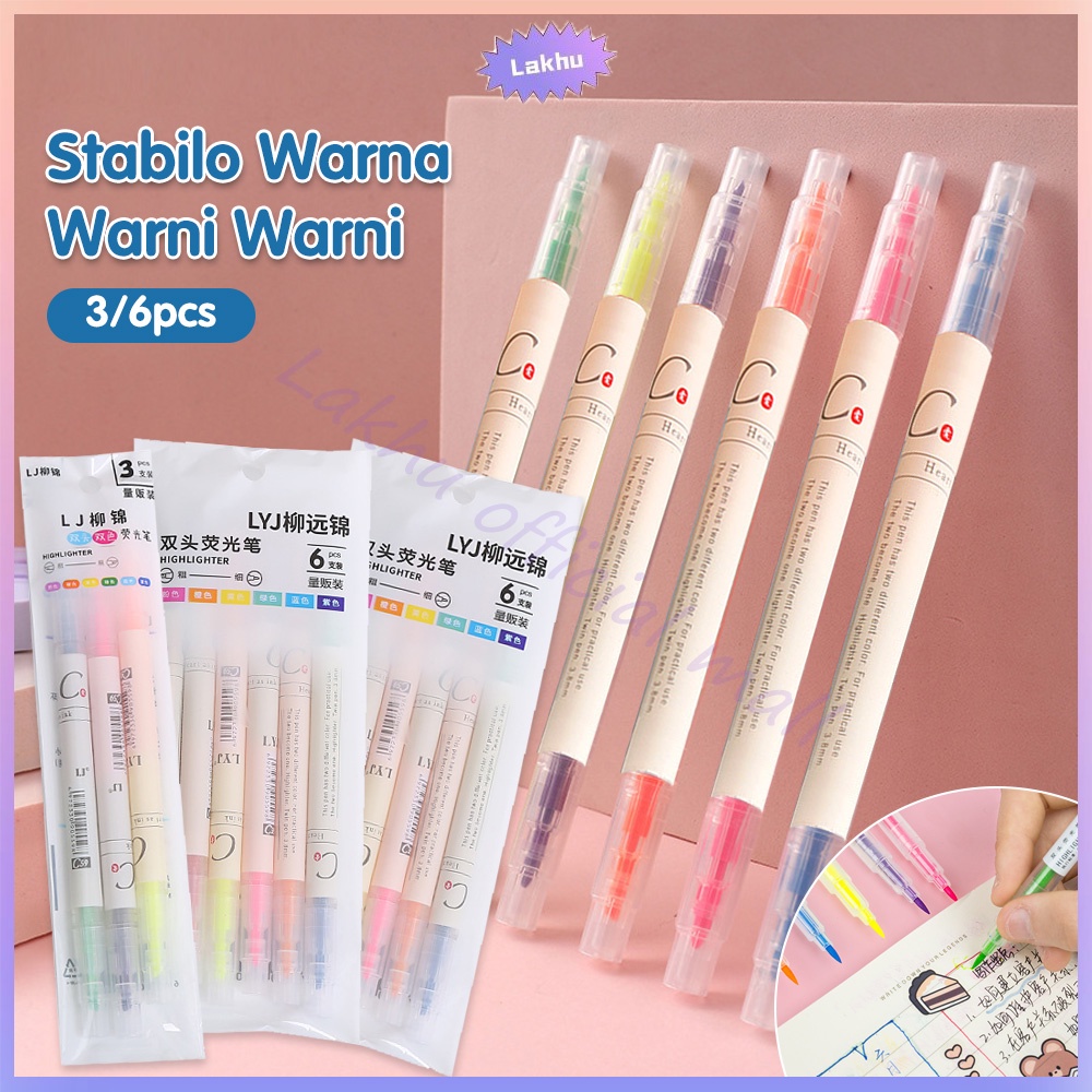 Video perkenalan produk Lakhu 6Pcs 1Set Stabilo 12 Warna Warni / Double Head Highlighter 12 Colors In 6 Pcs. Sumber: Shopee.
