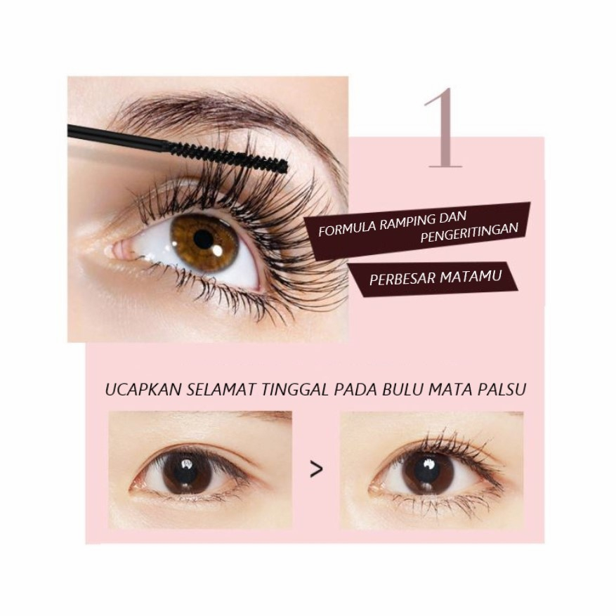 Maskara keriting panjang tahan air membuat bulu mata tebal dan lebat. Formula unik terbarunya dapat mencapai efek bulu mata yang lebat. Kualitasnya ringan dan dapat diaplikasikan secara merata pada setiap bulu mata, membuat bulu mata tebal dan ajaib. Bahan pelembab yang halus juga membentuk lapisan pelindung alami, membuat rambut halus, lembut dan elastis.