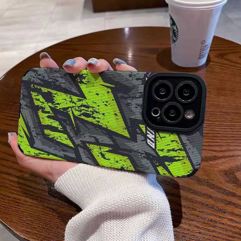 Handphone & Aksesoris > Casing & Skin > Casing & Skin Handphone > 【Lamb Skin】City Boy flaw Soft Case for IPhone 6S 7 Plus 8 Plus X XS XR XS Max 11 13 12 14 PRO Max 14 Plus 12 13 Mini Camera Protect Fluorescent Green
