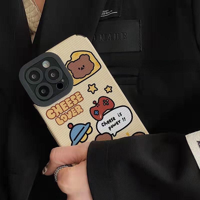 Handphone & Aksesoris > Casing & Skin > Casing & Skin Handphone > 【Lamb Skin】Cute Cheese Lover Bear Soft Case for IPhone 6S 7 Plus 8 Plus X XS XR XS Max 11 13 12 14 PRO Max 14 Plus 12 13 Mini Camera Protect Women's Cartoon
