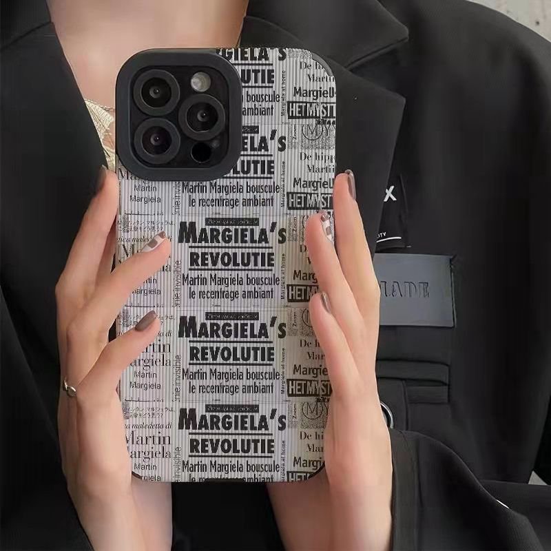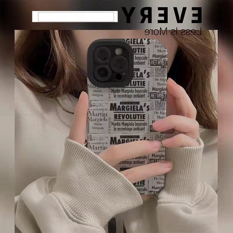 Handphone & Aksesoris > Casing & Skin > Casing & Skin Handphone > 【Lamb Skin】Grey English Newspaper Poster Soft Case for IPhone 6S 7 Plus 8 Plus X XS XR XS Max 11 13 12 14 PRO Max 14 Plus 12 13 Mini Camera Protect Women's Fashion