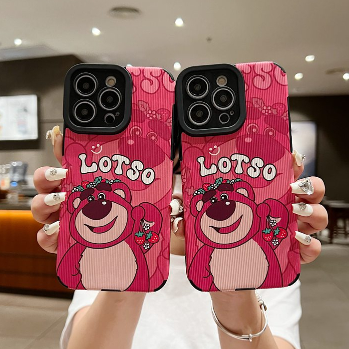 [Ready stock] 【Lamb Skin】So Cute LOTSO Strawberry Bear Leather Soft Case for IPhone 7 Plus 8 Plus X XS XR XS Max 11 13 12 14 PRO Max 14 Plus for Girl Women's Gift Red