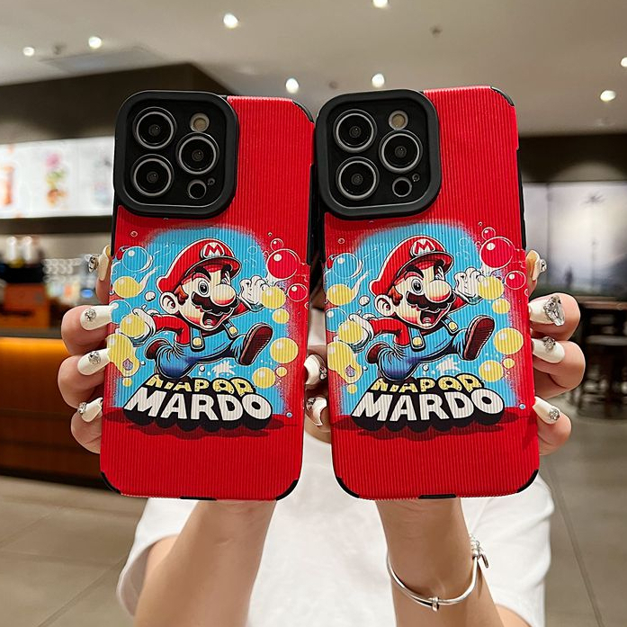 Handphone & Aksesoris > Casing & Skin > Casing & Skin Handphone > 【Lamb Skin】So Cute Red Papw Mario Leather Soft Case for IPhone 7 Plus 8 Plus X XS XR XS Max 11 13 12 14 PRO Max 14 Plus for Girl Women's Gift Missconnie Casing hp iPhone 11 Pro Max
