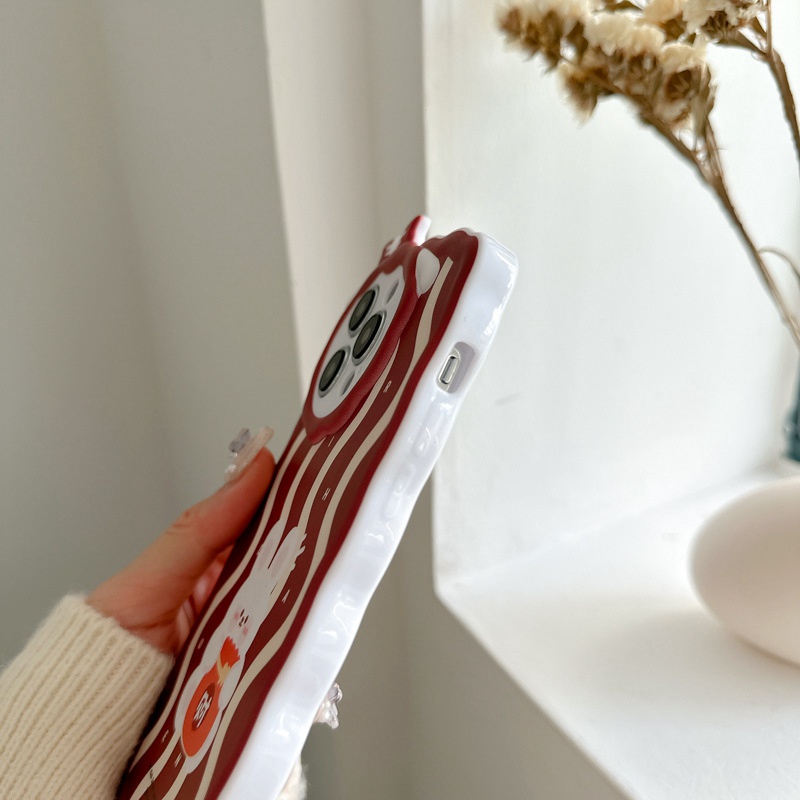 🔔【Ready Stock】 Lamb Style Red Wave Bunny Soft TPU Case HP iP iPhone 11 12 13 14 Pro Max 7 8 + Plus SE 2020 X XS XR Max Girl Woman FTD Casing Apple