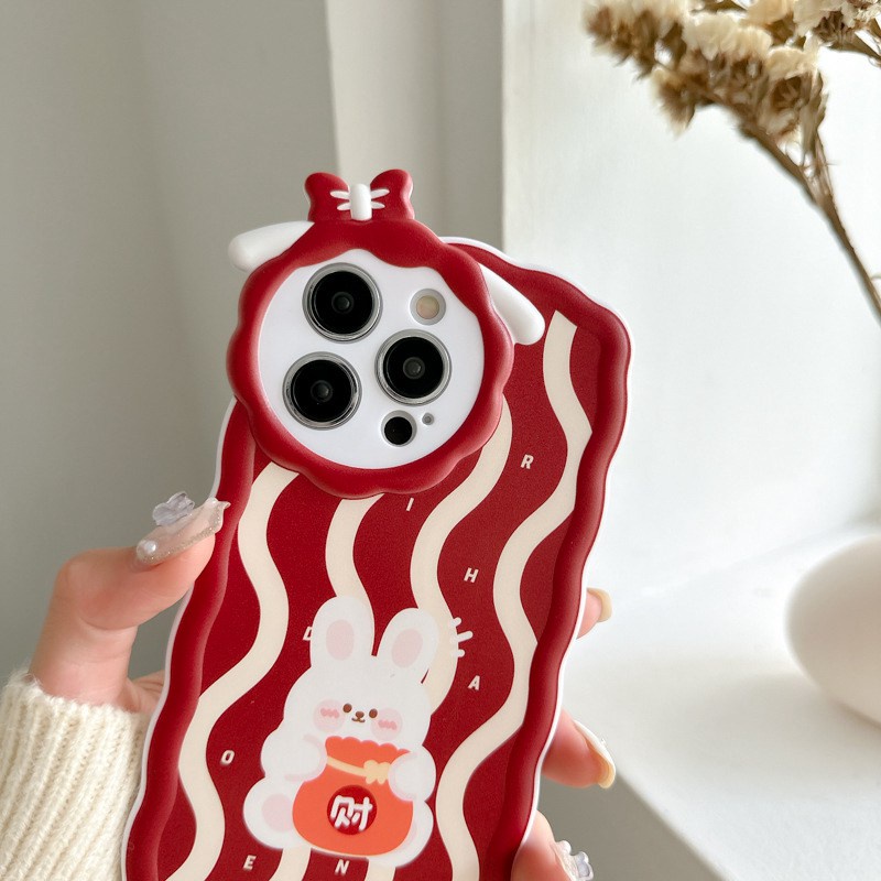 【Lamb Style】Red Wave Bunny Soft TPU Case HP iP iPhone 11 12 13 14 Pro Max 7 8 + Plus SE 2020 X XS XR Max Girl Woman FTD Casing Apple