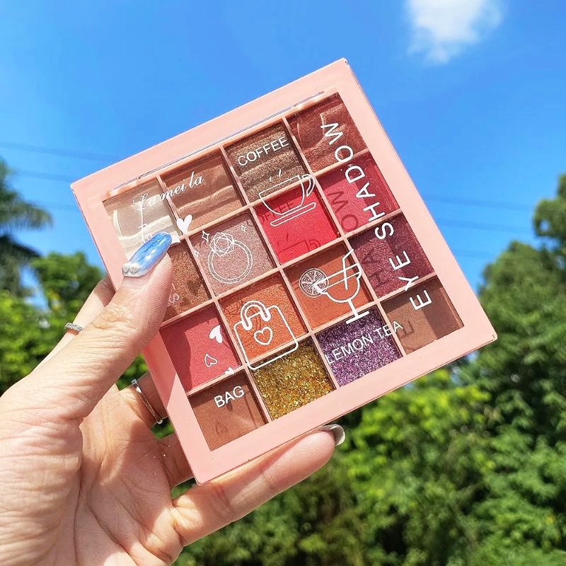 Detail Lameila 3043 Eyeshadow Palette 16 Warna Gliter Waterproof Tahan Lama
