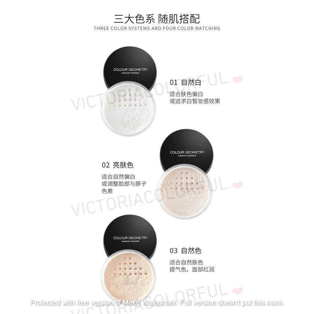 Bedak tabur yang dapat mengontrol minyak agak make up menjadi tahan lama dan menutupi pori-pori wajah agar keliatan lebih halus. Keunggulan : 1. Pengontrol minyak pada wajah, dengan formula ramah di kulit, mudah menghilangkan minyak berlebih dari kulit, efek make-up bertahan menyegarkan 2. Menggunakan bubuk powder yang alami, tekstur ringan 3. Empat macam warna, untuk warna kulit yang berbeda, membuat riasan bersinar secara alami 4. Bedak makeup berkualitas tinggi ini tidak akan menyumbat pori-pori dan membuat kulit Anda lebih sehat 5. Produk tidak mengandung bahan berbahaya dan tidak akan menyebabkan kerusakan pada kulit