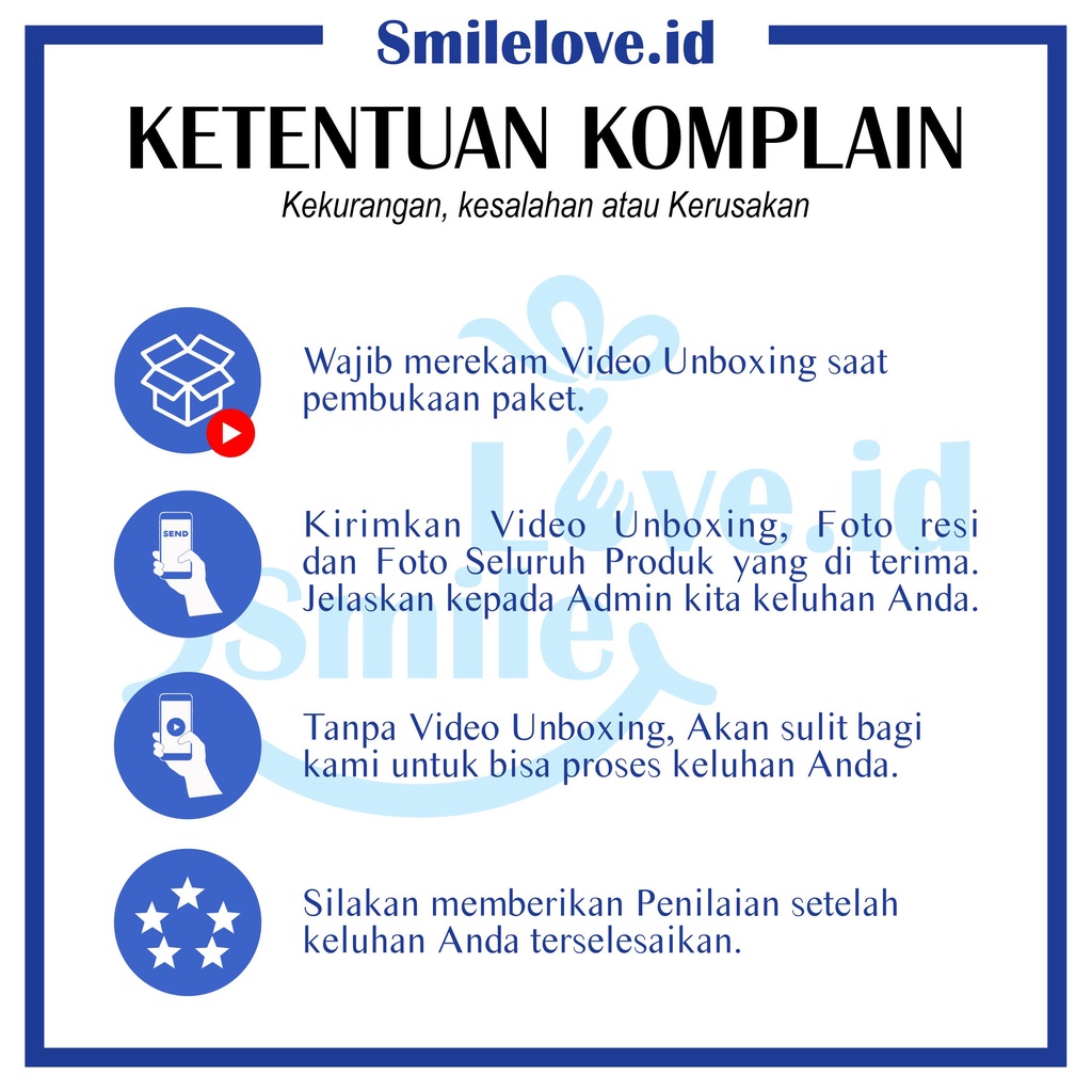 ⚠️ 1. MOHON SERTAKAN VIDEO UNBOXING DAN FOTO SELURUH PRODUK UNTUK KLAIM PRODUK KURANG/KERUSAKAN PRODUK. 2. TANPA VIDEO UNBOXING, TIDAK TERIMA KLAIM PRODUK KURANG/KERUSAKAN PRODUK. 3. SILAKAN TAMBAHKAN EXTRA BUBBLE WRAP/KARDUS AGAR AMAN DI PERJALANAN, KERUSAKAN/KEHILANGAN YANG TIMBUL SAAT PENGIRIMAN BUKAN TANGGUNGJAWAB PENJUAL. 4. MEMBELI = SETUJU. ⚠️