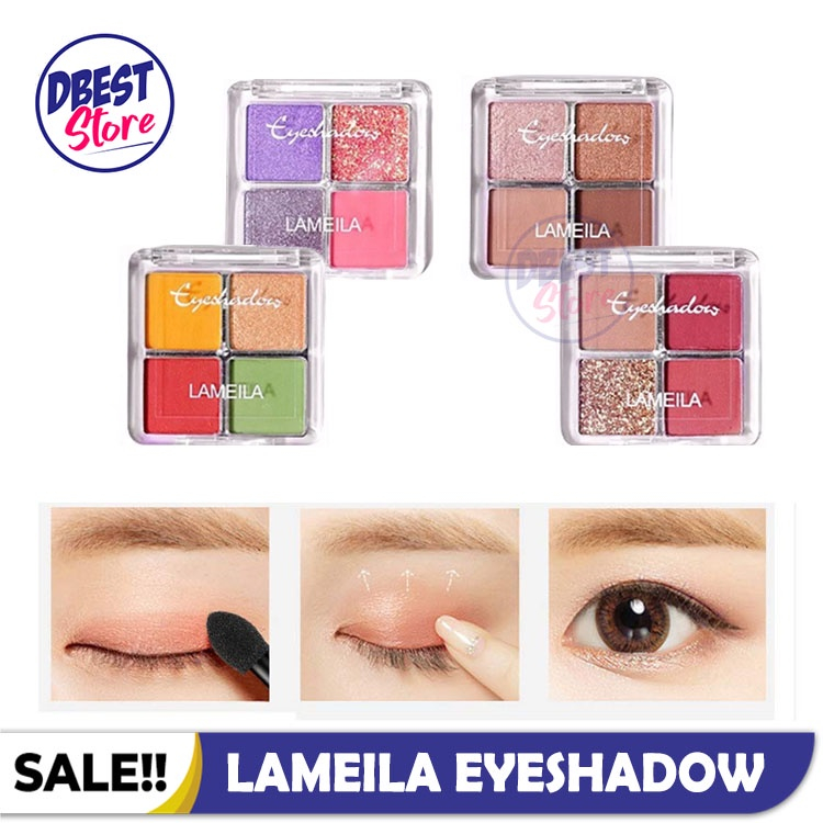 LAMEILA Eyeshadow Glitter Korea 9 Warna Pigmented Eye shadow Palette Waterproof - READY VARIAN * Eyeshadow dengan kualitas bedak yang halus, kaya akan warna, tidak mudah bertaburan, dengan warna yang menarik dapat menciptakan rona mata tiga dimensi. Membuata riasan terlihat feminin yang sangat cocok untuk berbagai kesempatan. * Cara Penggunaan : * Gunakan warna terang favorit Anda, dan aplikasikan primer di tengah rongga mata, lalu padukan dengan warna yang lebih gelap di ujung mata, atau warna sesuai dengan selera, dan mata akan telihat cantik seketika. * Cara Menyimpan : * Letakkan di tempat yang kering dan sejuk, hindari cahaya matahari langsung, jauhkan dari jangkauan anak-anak, produk ini hanya untuk pemakaian luar. * Umur Simpan : 4 tahun * Isi Bersih : 7.2g