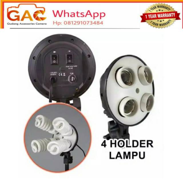 Ready stok lamp holder 4 socket +softbox 50x70 +lightstand