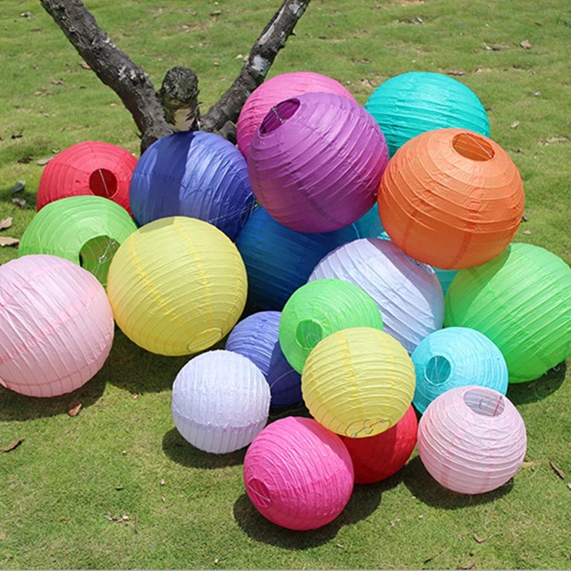 Detail Lampion Kertas Bentuk Bola Warna-Warni Ukuran 6 Inch Untuk Dekorasi Natal