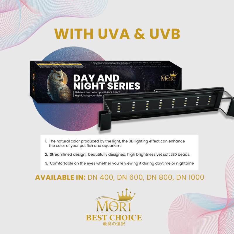 MORI Lampu Gantung Day & Night Merupakan lampu premium yang cocok untuk Aquascape dan Segala Ikan. Terbuat dari material premium dan terbaik, sehingga tidak mudah Rusak.