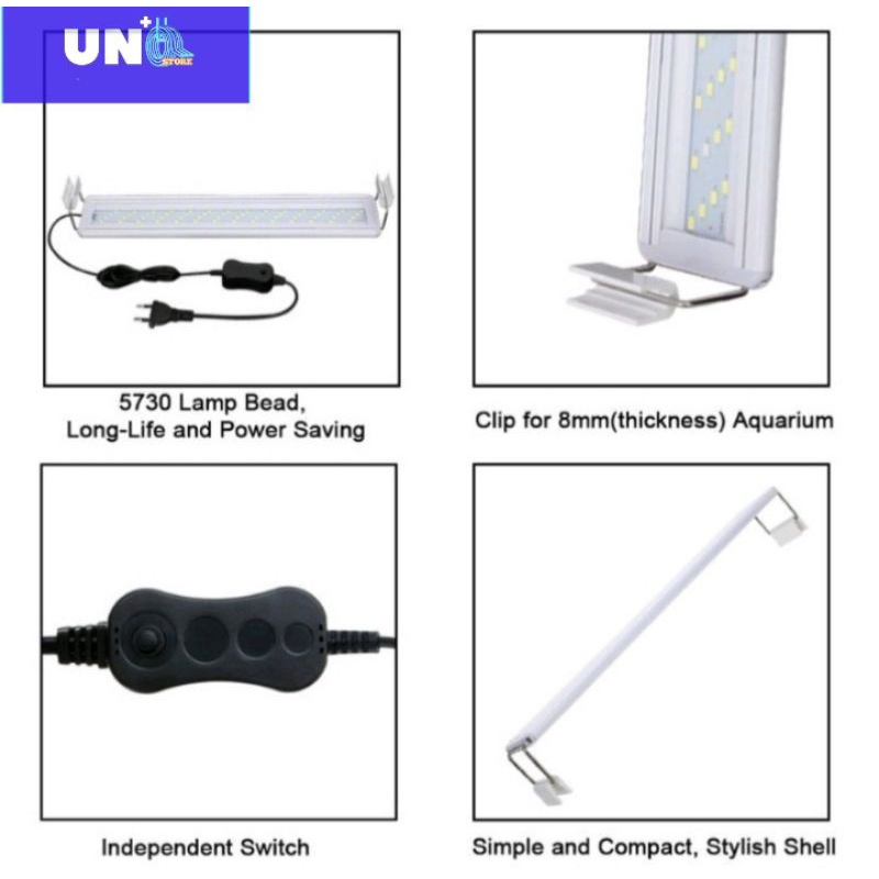 Lampu Aquarium Atas LED Hemat energi Untuk Menambah Pencahayaan. Dapat di gunakan untuk Aquascape sebagai pengganti cahaya matahari, Dan Ikan Hias Agar Lebih Indah.