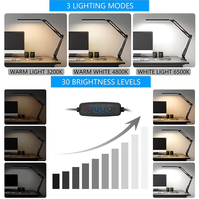 Detail Lampu Belajar LED USB Lampu Meja Kerja Arsitek Bengkel Service 3 Mode Cahaya Dengan Clamp Jepit Meja