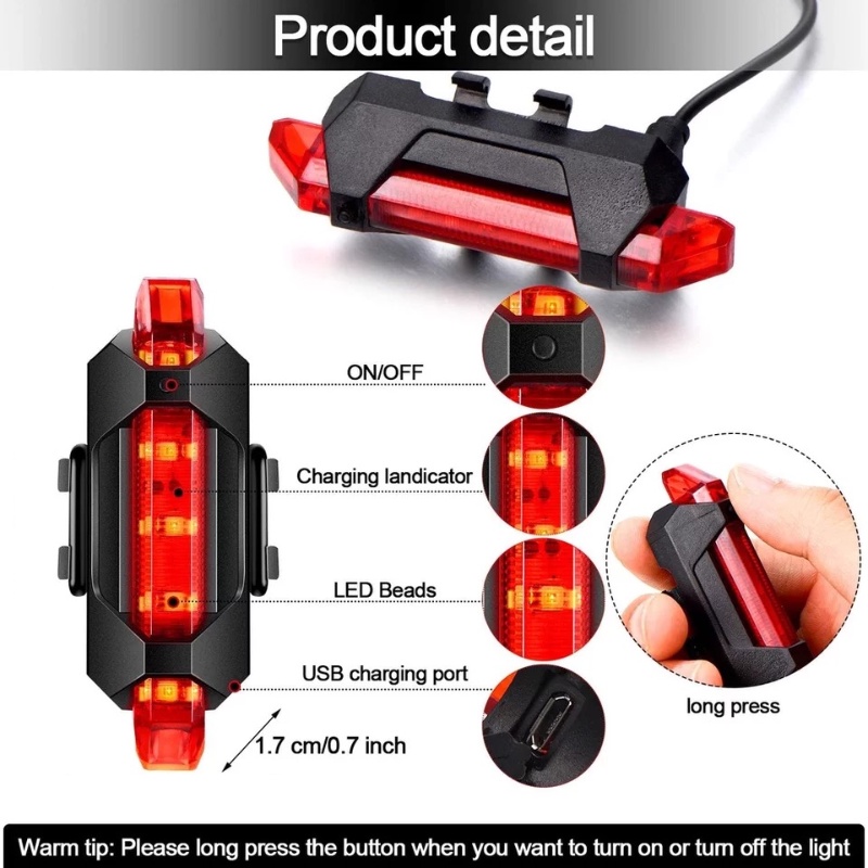 Detail LAMPU BELAKANG SEPEDA LED USB RECHARGEABLE ANTI AIR LAMPU SEPEDA USB + KABEL CAS / LAMPU SEPEDA WATERPROOF