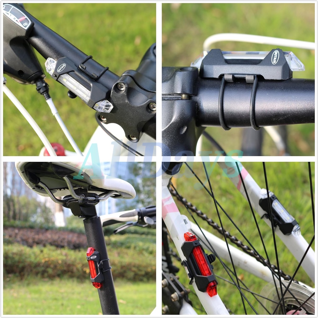 * Diikatkan pada stang, tiang jok, rangka, atau bahkan ransel Anda. Cukup tekan tombol sakelar untuk menggunakannya. Dengan 3 mode: Cahaya stabil, Bersepeda lambat, Bersepeda cepat. Anda dapat dengan mudah terlihat dalam kabut, senja, malam, dan fajar