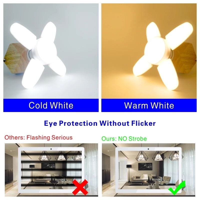 Package Contents Barang-barang yang Anda dapat dalam kotak produk: 1 x Foroureyes Lampu Bohlam LED Bulb Fan Blade E27 28W - 6500K