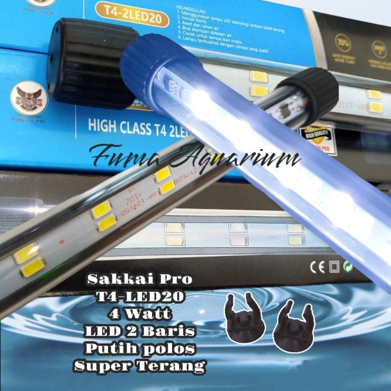 Hobi & Koleksi > Aksesoris Hewan Peliharaan > Kebutuhan Akuarium > Lampu Aquarium 20cm SAKKAI PRO T4-2LED20 Led 2 Baris Putih Polos 4 Watt. Lampu celup Led Aquarium
