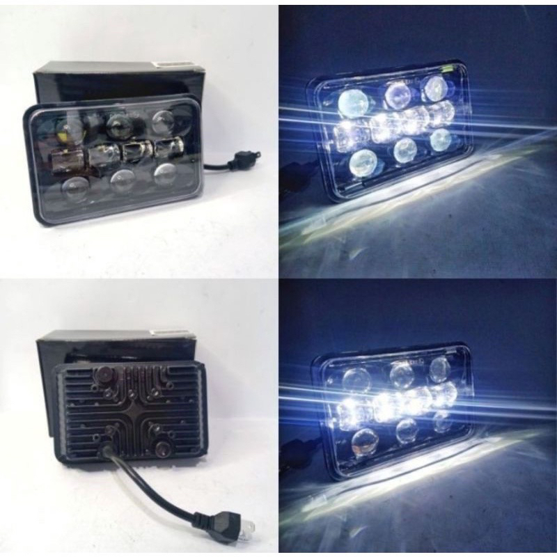 lampu depan sorot daymaker kotak 10 Led Ukuran : 6 x 4 inch PNP : RX King GL100 GL Pro max Win Suzuki Ts 100 Power : 90 watt Brand : idm Body : Alumunium Cast Socket : H4