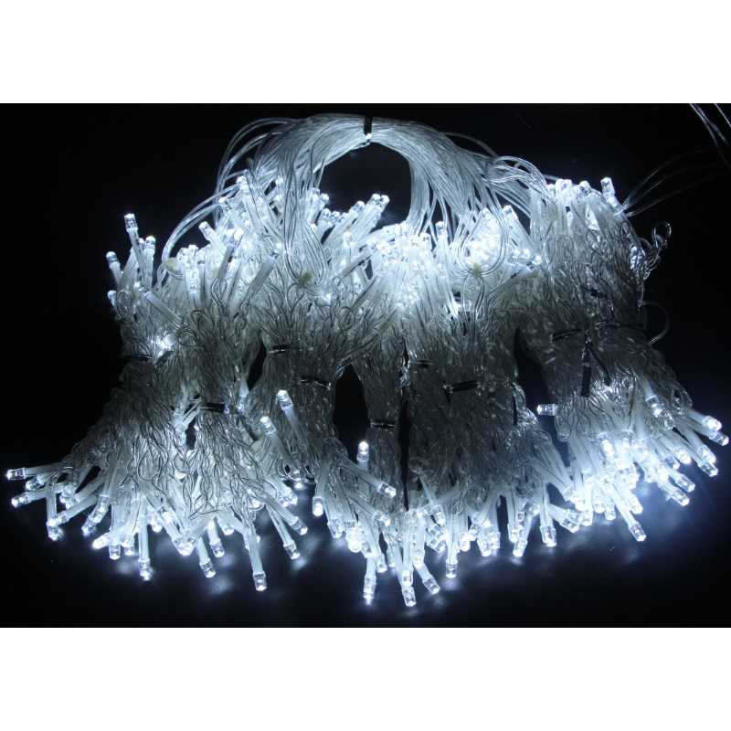 Jumlah LED 300 LED Temperatur Warna Cool White 6500K Voltase 220 V Dimensi Rangkaian: 12 rangkaian, (1 rangkaian 25 LED) Tinggi Kabel: 3 meter Panjang Kabel: 3 meter