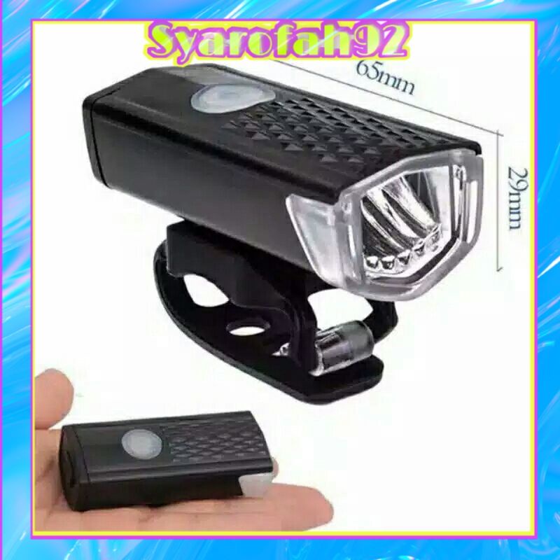 Dimensi 6,5 cm x 2,8 cm x 2,5 cm (P x L x T) Jenis Cree Led 3 mode nyala Battere 800 mAh Lithium Polymer rechargeable vis USB slot Sudah termasuk bracket handlebar Sudah termasuk kabel charge USB