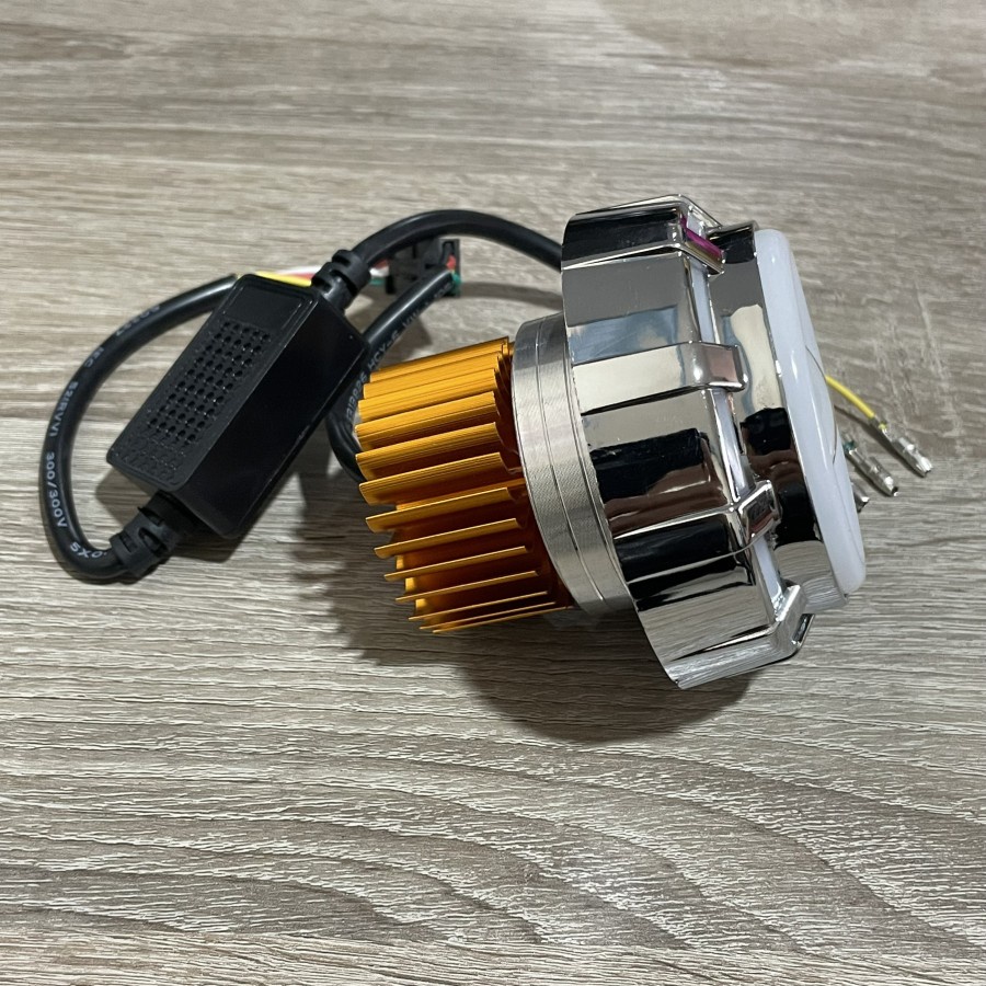 Terdapat 5 kabel dan kegunaannya : Hitam : Ground (-) Hijau : Low / Lampu jarak dekat Merah : High / Lampu jarak Jauh Kuning : Angel aye & Demon ( bisa standby dan gerak , cukup matikan dan nyalakan lagi untuk ganti mode )