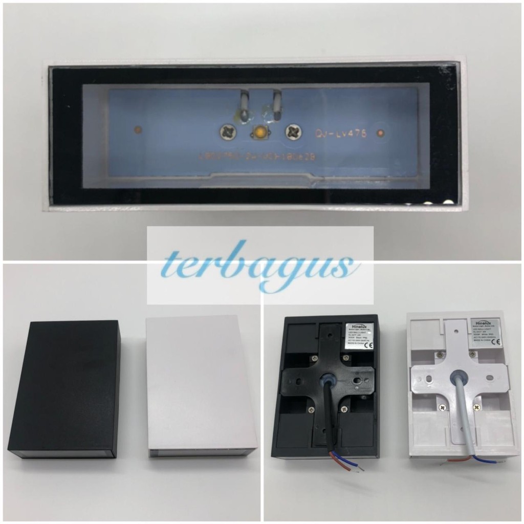 Body:Putih/hitam Cahaya:Warm white Ukuran lampu:83*123*30mm Power:2X2w Input:AC110-240V CRI>80 Bahan:PC Anti air:IP65. waterproof outdoor tahan hujan dengan rating IP65 untuk segala cuaca, tapi bukan untuk direndam didalam air Lumen:150LM Sudut:41derajat