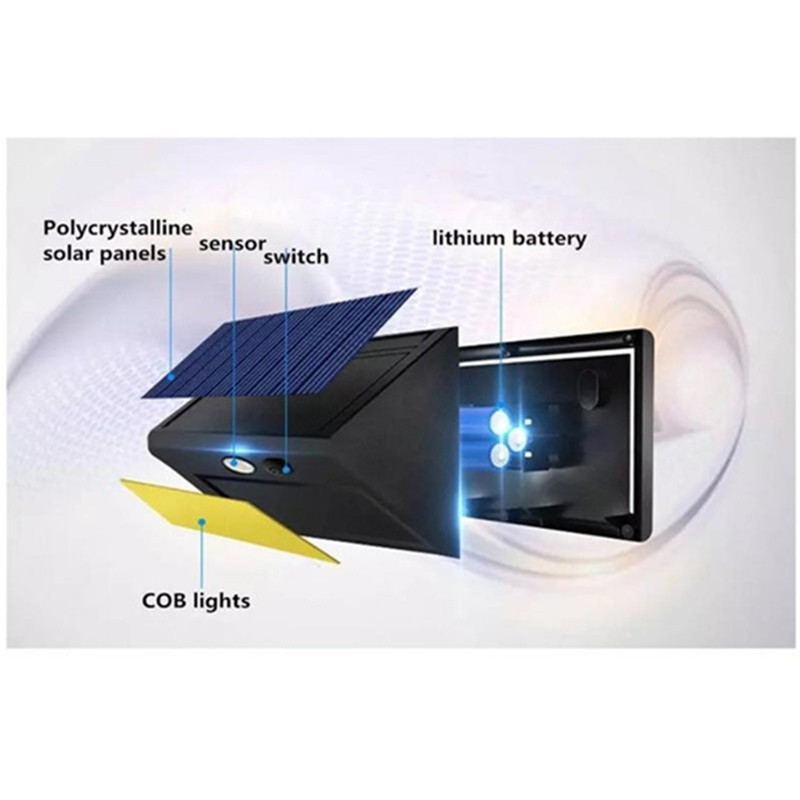 Lampu warna Warm - Memakai tenaga matahari - Memakai sensor gerak ( akan terang jika ada gerakan ) - Berat produk 300gr - Waterproof - Battery Type Li-ion Battery 1200mAh - 96 LED COB - Voltage 3.7V - Material ABS, PC - Dimension 175 x 110 x 45 mm - Others Solar Charge time: 8h - Delay Time: 20s Mode kerja pencahayaan: