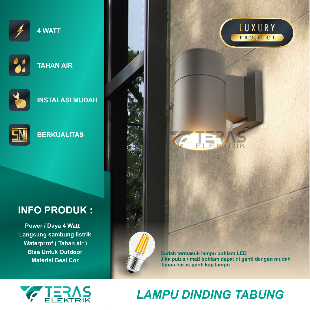 * Warna Body : Hitam * Cahaya 3000K * Daya 4 Watt / 7 Watt * Voltage :220 - 240V 50/60hz * Life -span : 50.000 jam * Material Besi Cor ( Bukan Plastik ) Kuat Dan Kokoh (asli lebih bagus di bandingkan gambar) * Minimalis Dan Terang