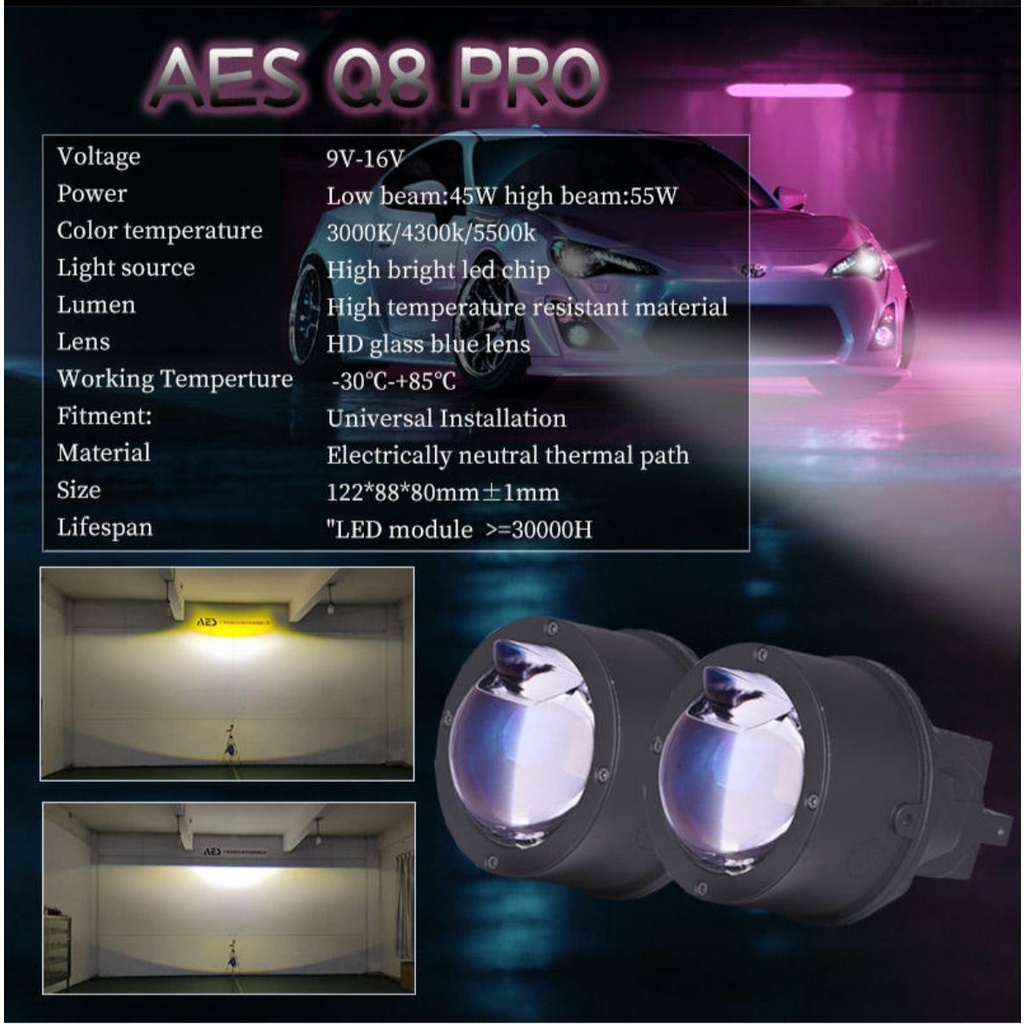 Otomotif > Suku Cadang Mobil > Lampu Mobil > Lampu Foglamp Biled Laser AES Q8 PRO LASER 3 Warna 3000k 4300k 6000k / Projector Projie BILED Foglamp AES Biled 3 Inch 1 year