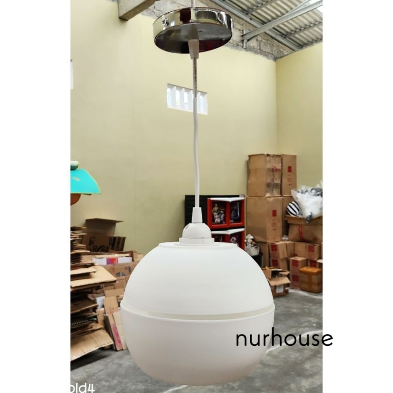 Lampu gantung dengan model simple Elegant mempercantik ruangan dengan kesan minimalis cocok untuk ruang tamu ,teras ,kamar ,dapur dll diameter 20 cm material plastik panjang kabel 1,2 meter fiting standar e27