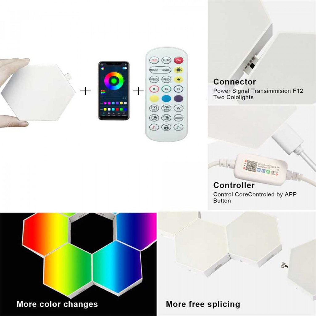 Detail Lampu Hexagon LED RGB 10 PCS Dekorasi Interior Kontrol Aplikasi Remote
