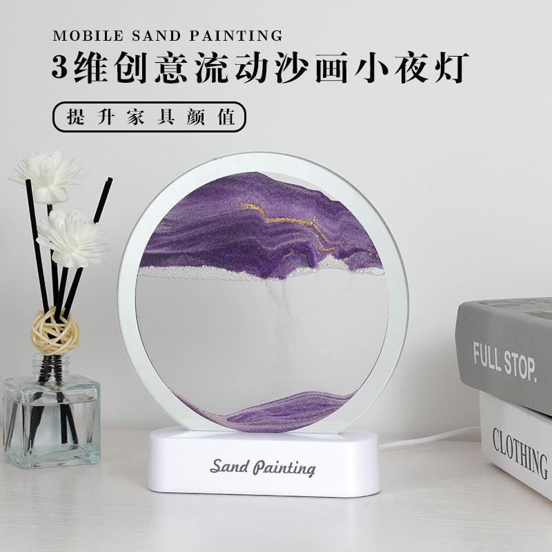 Detail Lampu Hiasan Pasir Dekorasi 3D Lukisan Pasir Gerak Lukisan Hias Jam Pasir Lampu Meja Lampu Akrilik Night Light