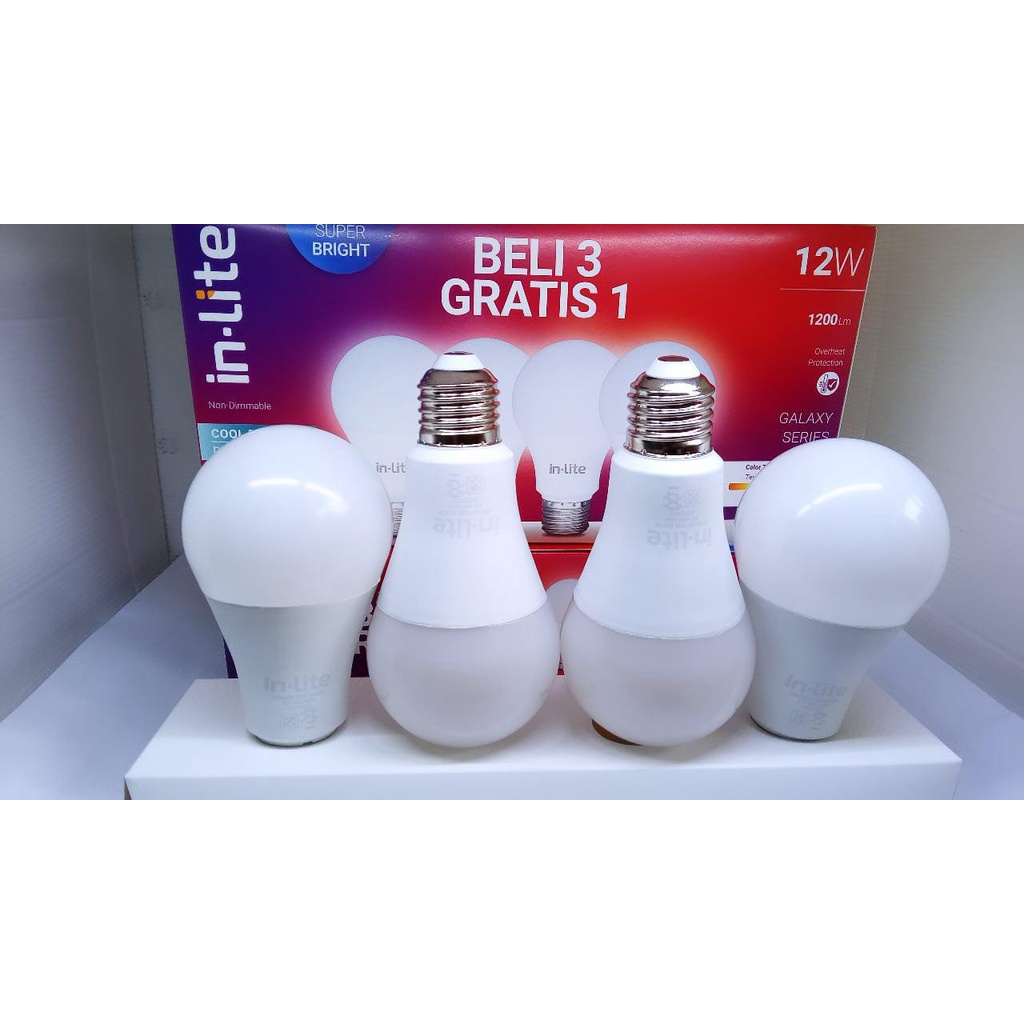 Detail Lampu In-Lite Led Paket In lite 12w Paket Inlite Pack Beli 3 Gratis 1 Putih In-Lite INB007 Led Bulb 12 Watt 12 W 12Watt