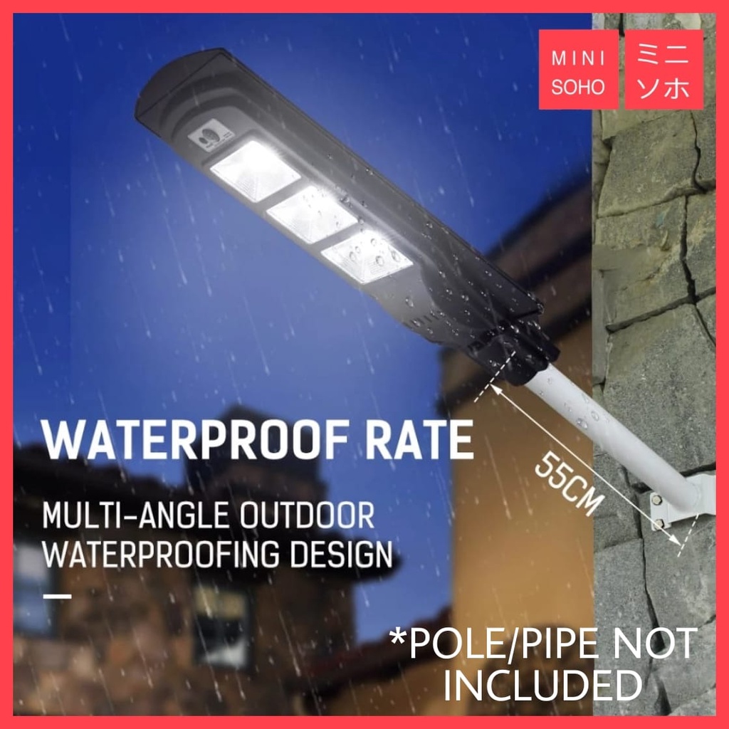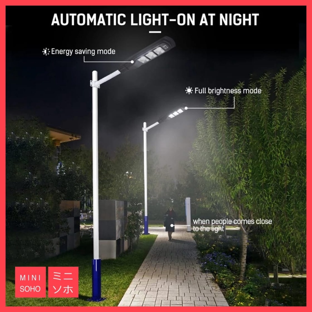 SPESIFIKASI: Daya : 60W / 90W / 150W / 200W Baterai : 5AHx1 3.2V (60W) / 5AHx2 3.2V (90W) / 5AHx2 3.2V (150W & 200W) Solar Panel : - 60W : 8W 6V / 174x380mm - 90W : 12W 6V / 180x484mm - 150W : 8W 6V / 171x456x3mm - 200W : 10W 6V / 171x548x3mm Dimensi lampu : - 490x190x65mm (60W) - 600x195x65mm (90W) - 500x190x55mm (150W) - 605x190x55mm (200W) Anti air : IP65. waterproof tahan untuk segala cuaca, tapi bukan untuk direndam didalam air. Daya tahan baterai : 12 jam menyala dari full charging Bahan : ABS