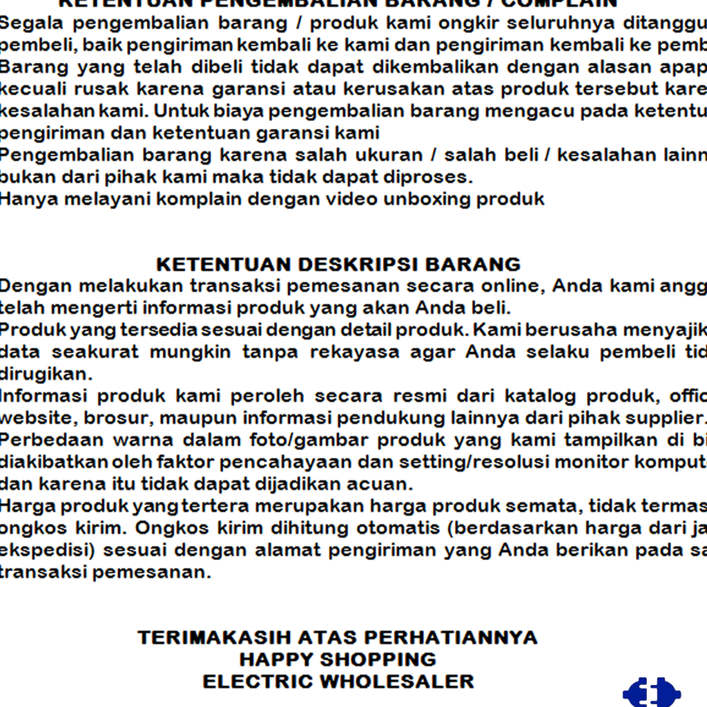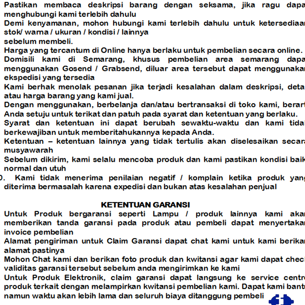 Mohon membaca SYARAT DAN KETENTUAN yang tertera pada gambar produk.