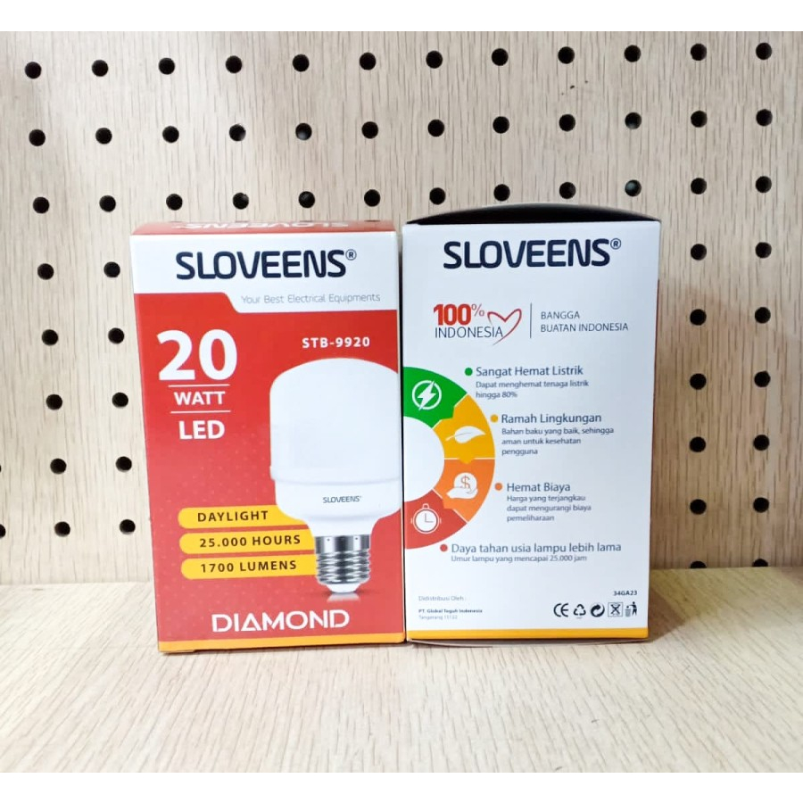 - Merek : Sloveens Diamond 20W - Made in Indonesia - Cahaya Putih - 25.000 Jam - 1700 Lumen - Hemat Energi 80 % - LED Bulb Cool Daylight 7000K Based E27 - Fiting E27 Umum - Tidak mudah pecah - Pemakaian bisa di dalam dan di luar ruangan - Nyaman di mata tidak beradiasi