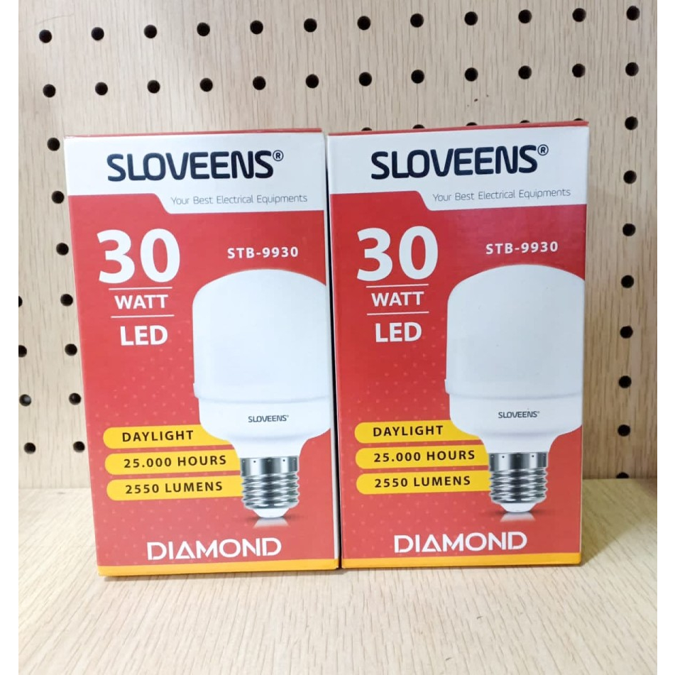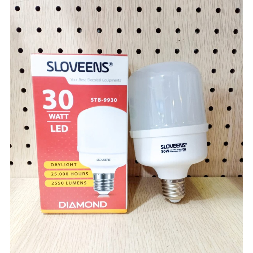 - Merek : Sloveens Diamond 30W - Made in Indonesia - Cahaya Putih - 25.000 Jam - 2550 Lumen - Hemat Energi 80 % - LED Bulb Cool Daylight 7000K Based E27 - Fiting E27 Umum - Tidak mudah pecah - Pemakaian bisa di dalam dan di luar ruangan - Nyaman di mata tidak beradiasi